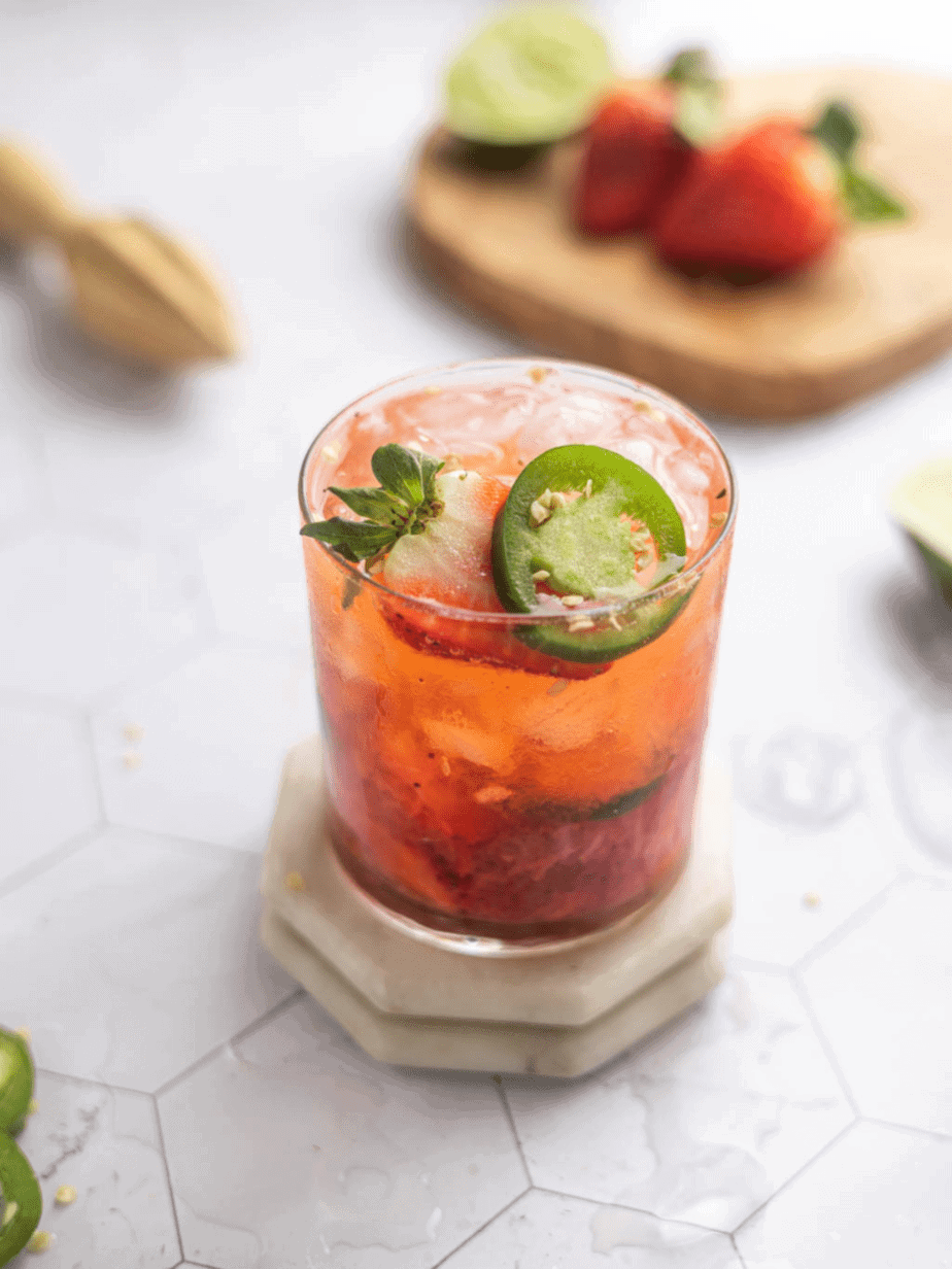Top it off with a sprinkle of salt and a garnish of fresh strawberries and jalapenos, and you’ve got yourself a drink that’s as beautiful as it is tasty. So grab your shaker and get ready to take your margarita game to the next level with this irresistible recipe!